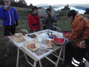 Bufff, sandia, fuet, sandwich, frutos secos, «nocilla», vino …de todo!!!
